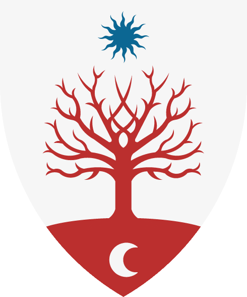 Partido dimidiado: primero de plata un árbol arrancado y deshojado de púrpura; segundo de sable una estrella ondada vacía de 16 puntas de oro, cargada de dos crecentes de plata afrontados. Por lema: 'HAUD VITA SINE MORTE' |