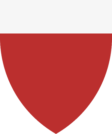 Partido de azur y gules, brochante sobre la partición, una faja de plata |