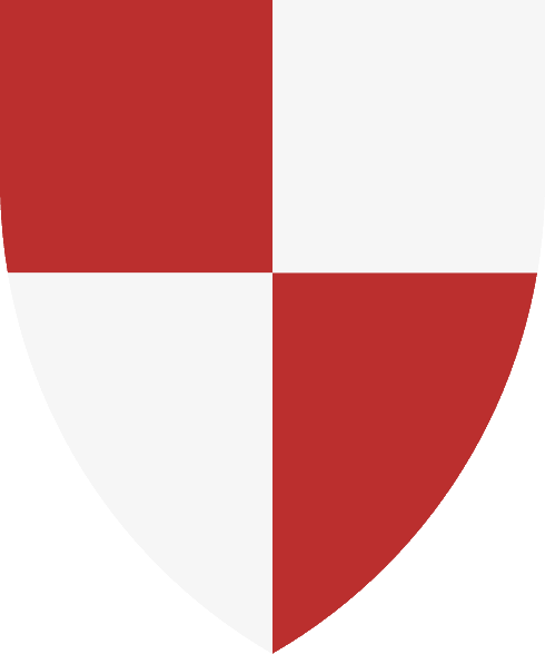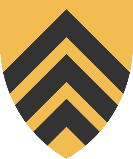 Tajado, primero de plata una mota de armiño de sable; segundo de gules, una mota de armiño de oro, sobre la partición una traversa en barra de oro |