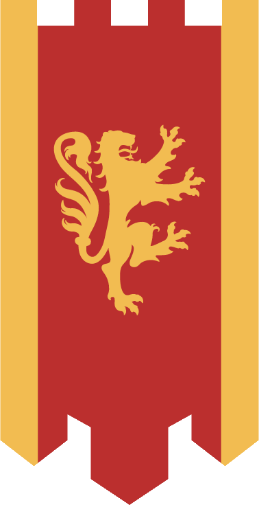 De gules flanqueado de oro, un león contornado de lo mismo |