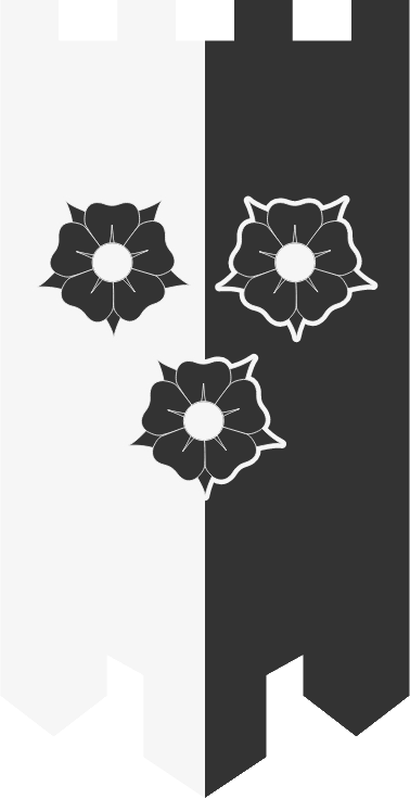 Partido de plata y sable, sobre el todo tres rosas de sable botonada y perfiladas de plata |