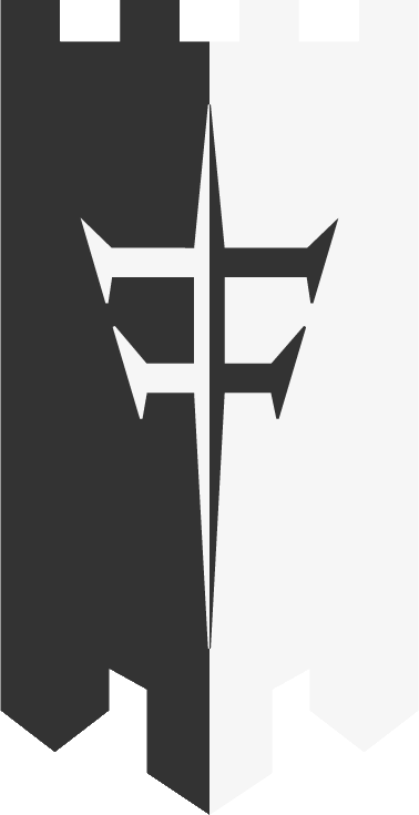 Partido de sable y plata, sobre el todo una 'Cruz de Vitalis' del uno al otro |