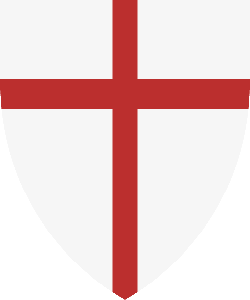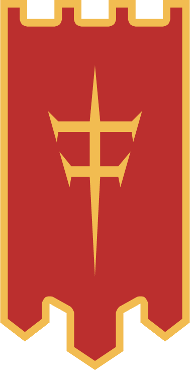 De gules una cruz latina patada tricúspide a todo trance |