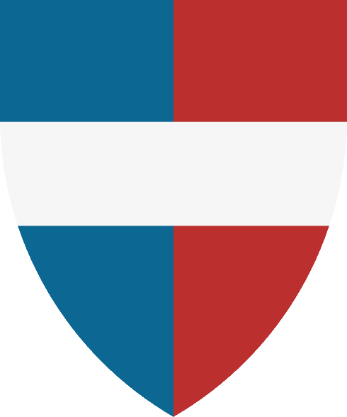 De gules un Drakkar contornado de azur, filiera de plata |