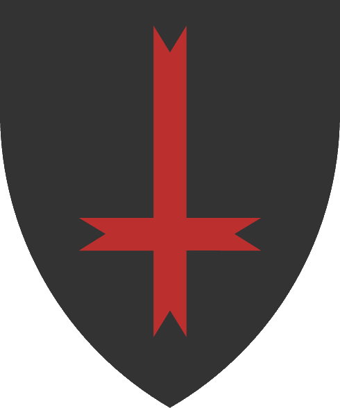 De sable una cruz latina de 8 puntas ranversada de gules |