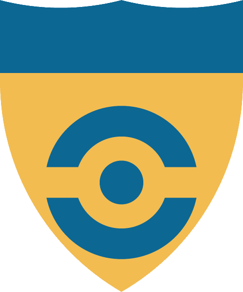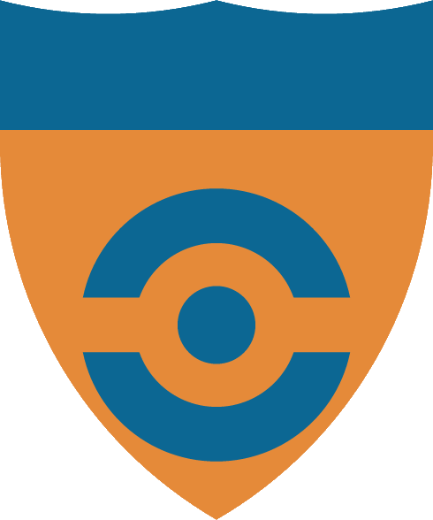 De naranjado, un roel de azur, circundado de un anillete de lo mismo cargado con una faja cosida de naranjado, el jefe cosido de azur |