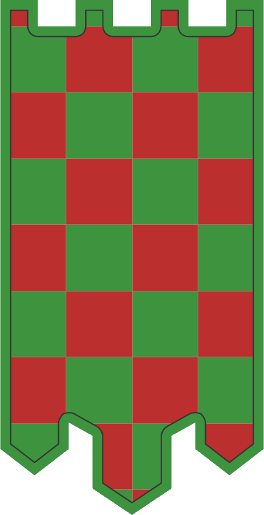 Jaquelado de sinople y gules, filiera cosida de sinople |