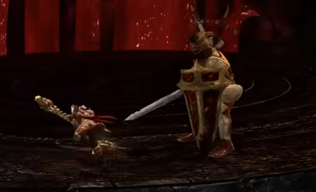 Luego de una 8 o 9 horas terminé el juego, me gustó bastante. Ya llegando al final, en el círculo de “Violencia”, enfrentamos a un nuevo enemigo llamados “Cruzados Malditos”, los que portan el siguiente escudo: