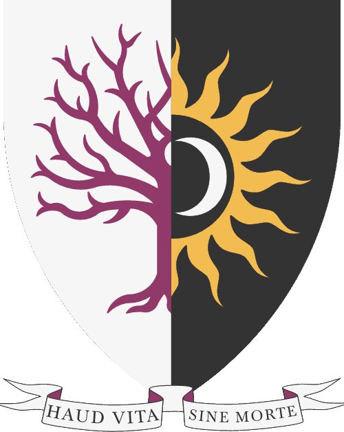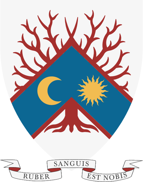 “Partido dimidiado: primero de plata un árbol arrancado y deshojado de púrpura; segundo de sable una estrella ondada vacía de 16 puntas de oro, cargada de dos crecentes de plata afrontados. Por lema: ‘HAUD VITA SINE MORTE’”